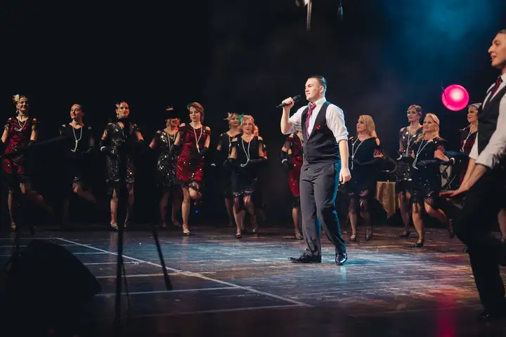 Na scenie ponad 50 artystów – orkiestra, tancerze, soliści, chór i najmłodsze pokolenie zespołu. Magiczna atmosfera przedwojennej Warszawy, kostiumy z epoki i niezapomniane przeboje.